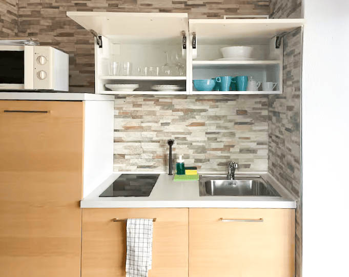 Cocina equipada: Moderna y funcional, incluye todo lo necesario para cocinar, como nevera, microondas, placa de vitrocerámica, cafetera y utensilios.